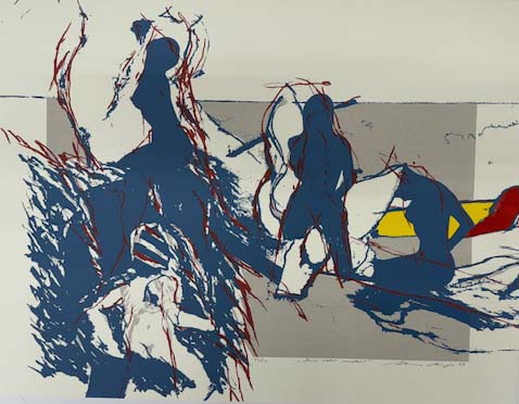 Mennekes, Friedhelm (Herausgeber): Aus Passion. Hommage an Franz Joseph van der Grinten. Eine Sammlung von Druckgraphiken und Unikaten in einer Auflage von 53 Exemplaren, I – III und 1 – 50, herausgegeben von Friedhelm Mennekes und verlegt von Michael Wienand in Köln 1993. Erste Auflage. Köln. Michael Wienand. 1993. 55 x 42,5 cm (Mappen); 58,2 x 44,5 x 12,3 cm (Stülpdeckelkarton). [184] unpaginierte Blätter. Lose Büttendoppelbögen in leinenkaschiertem OStülpdeckelpappkarton mit geprägter Titelei recto. Karton minimal angestaubt und wenig berieben, sonst sehr gutes Exemplar. Durchgehend mit meist farbigen Abbildungen versehen. Mappenwerk mit unterschiedlichen Druckgrafiken und Unikaten. Es finden sich Ätzradierungen (1), Kaltnadelradierungen (5), Linolschnitte (1), Aquatintaradierungen (1), Siebdrucke (9), Offsetlithografien (7), Holzschnitte (8), Lithografien (7), Holzdrucke (2), Handabriebe (1), Serigrafien (1), Linoldrucke (1), Fotoabzüge auf Barytpapier (1) sowie unikatäre Drucke (Bleistift auf Offsetlithografie, Einsenschnitte, Öl über Offsetlithografie, Schablonendruck mit Sprayfarbe, Linoldruck und Collage). Desweiteren Unikate, darunter Scherenschnitte (1), Wasserfarben auf Papier (1), Bleistift- und Graphitarbeiten (2), Acryl auf Folie (1), Pappschnitte (1), PVC und gefaltetes Papier (1), Acryl auf Graupappe (1), Holunderdolde auf Papier (1) und Öl auf Papier (1). Die Arbeiten stammen von René Acht, Anatol, Cees Andriessen, Thomas Bayrle, Werner Berges, Burkhart Beyerle, Robert Brandy, Jürgen Brodwolf, Hede Bühl, Christian Paul Damsté, Peter Dreher, Franz Eggenschwieler, Herbert Egl, Hellmut Fabini, Herbert Falken, Sara Focke, Heinrich Gillis Görtz, Franz van der Grinten, Gerhard van der Grinten, Thomas Grochowiak, Franz Gutmann, Kai Hackemann, Jonas Hafner, Werner Haypeter, Erwin Heerich, Heinz-Albert Heindrichs, Romane Holderrieth Kaesdorf, Gerd Jansen, Alexander Jokisch, Klaus Jürgen-Fischer, Julius Kaesdorf, Horst Egon Kalinowski, Gunther Keusen, Peter Croeger Claussen, Michel Lablais, Adolphe Lechtenberg, Karoline Elke Löffler, Julia Lohmann, Ewald Mataré, Hannes Maubach, Eduard Micus, Thomas Müller, Günther Oellers, Friedrich Panzer, Arne Bernd Rhaue, Hans Christian Rüngeler, Holger Runge, Rolf Sackenheim, Rudolf Schoofs, Johannes Schreiter, Hannes Steinert, Hermann Teuber, Axel Vater, Walter Verwoert, Konrad Vetter, Walter Vogel, Gottfried Wiegand, Martel Wiegand, Ben Willikens und Walter Zacharias. Aus einer auf 50 + III Exemplare limitierten Edition, hier Edition Nr. 31/50. Die in schweren Büttendoppelbögen eingelegten Papierarbeiten meist signiert, datiert und nummeriert, teils betitelt.