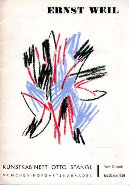 Weil, Ernst: Ernst Weil. Kunstkabinett Otto Stangl München, 21. April bis 20. Mai 1958. Erste Auflage. München. Kunstkabinett Otto Stangl. 1958. 17 x 12 cm. 12 unpaginierte S. Illustrierte OBroschur. Rücken leicht knitterspurig und minimal nachgedunkelt, sonst sehr gutes Exemplar. Erschienen anlässlich der Ausstellung des Kunstkabinett Otto Stangl München vom 21. April bis 20. Mai 1958. Durchgehend mit schwarz-weiß Abbildungen versehen. Mit einer handschriftlichen Signatur des Künstlers, datiert auf April 1958, auf der Einbandinnenseite. Beiliegend mit einem siebzehnzeiligen, handschriftlichen Brief vom Künstler an Eduard Trier, den deutschen Kunsthistoriker, Ausstellungskurator und Hochschullehrer, sowie ehemaligen Direktor der Kunstakademie Düsseldorf, ebenfalls signiert.