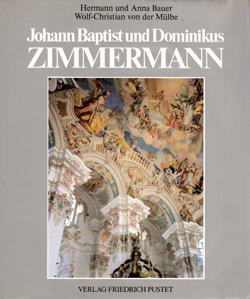 Zimmermann, Johann Baptist und Dominikus – Hermann und Anna Bauer (Herausgeber): Johann Baptist und Dominikus Zimmermann. Entstehung und Vollendung des bayerischen Rokoko. Herausgegeben von Hermann und Anna Bauer. Regensburg. Friedrich Pustet Verlag. 1985. 29 x 24 cm. 336 S. OLeinen mit illustriertem OUmschlag. Umschlag berieben und etwas nachgedunkelt. Der hinterer Einbanddeckel hat eine leichte Stauchung. Einband etwas fleckig. In den Anmerkungen teilweise Bleistift-Anstreichungen. Ordentliches Exemplar. Durchgehend mit meist farbigen Abbildungen versehen.