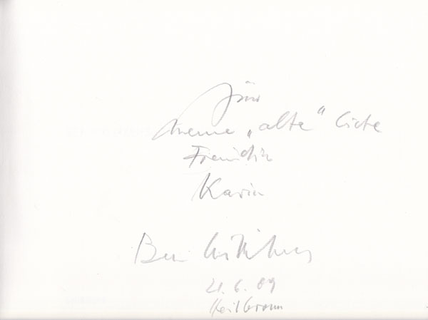 Willikens, Ben – Marc Gundel [Herausgeber]: Ben Willikens. 70 Aquarelle. Erste Auflage. Heilbronn.Künzelsau. Städtsche Museen Heilbronn. Swiridoff Verlag Künzelsau. 2009. 23,5 x 31 cm. 110 S., 1 Blatt. Illustrierter OPappband. Gutes bis sehr gutes Exemplar. Katalog zur Ausstellung Heilbronn 25. 4. bis 21. 6. 2009 durchgehend mit meist ganzseitigen, farbigen Abbildungen versehen. Mit eigenhändiger, mehrzeiliger Widmung des Künstlers an eine bekannte deutsche Kunsthistorikerin auf dem vorderen Vorsatzblatt! Inliegend Einladung zur Ausstellungseröffnung.
