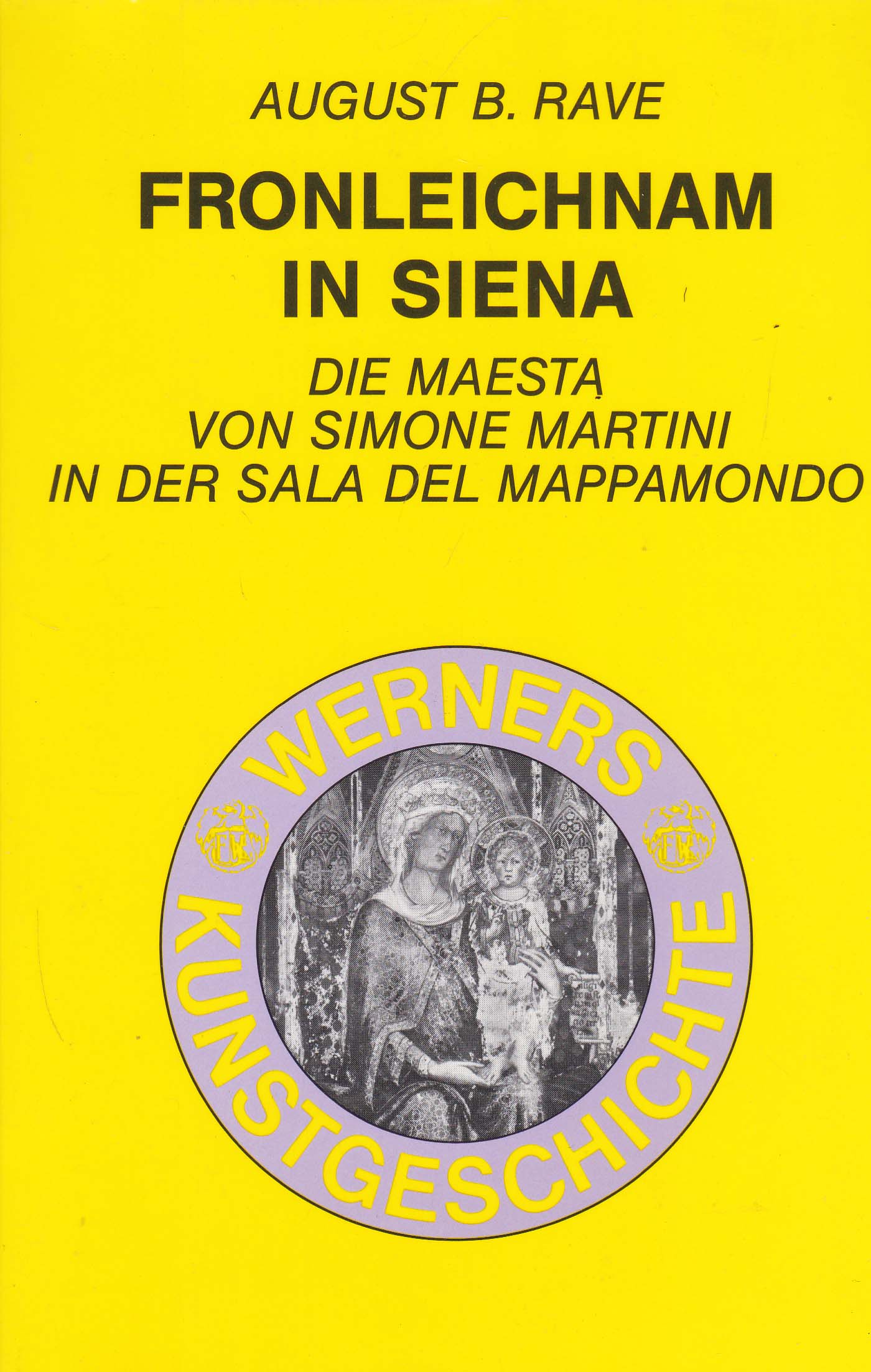 Martini, Simone – August B. Rave: Fronleichnam in Siena. Die Maesta von Simone Martini in der Sal Del Mappamondo. Erste Aulflage. Worms. Wernersche Verlagsgesellschaft. 1986. 19 x 12,5 cm. 44 S. Illustrierter OKarton mit Klappenumschlag. Kleine private Widmung auf dem Vortitel. Sonst gutes Exemplar. Mit schwarz-weissen Abbildungen versehen.