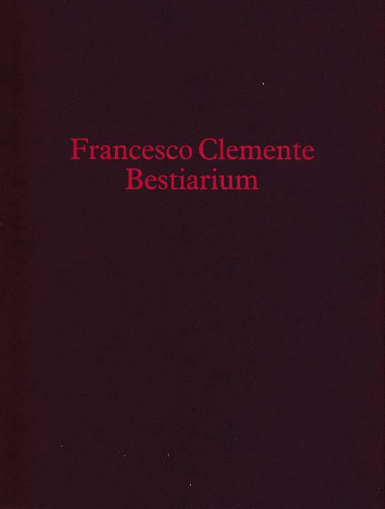 Clemente, Francesco – Jean-Christophe Ammann: Bestiarium. Erste Auflage. Frankfurt am Main. Museum für Moderne Kunst. 1991. 24 x 19 cm. 57 S. OKarton mit OKlappenumschlag. Vorderer Klappenumschlag mit sehr wenigen winzigen Fleckchen sowie an der unteren Kante marginal berieben, sonst gutes Exemplar. Schriften zur Sammlung des Museums für Moderne Kunst, Frankfurt am Main. Texte in Deutsch und Englisch. Mit 8 ganzseitigen farbigen Werkabbildungen.