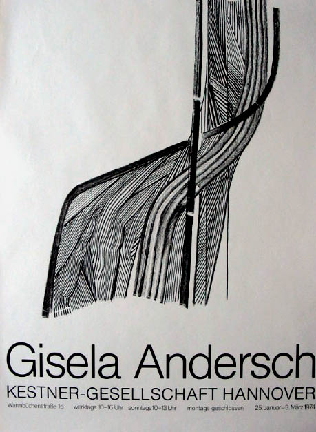 Andersch, Gisela: 25. Januar – 3. März 1974. [Plakat] Kestner-Gesellschaft Hannover. 11. Oktober bis 24. November 1974. Hannover. Kestner Gesellschaft. 1974. 84 x 59 cm. Sehr gutes Exemplar. [Bei Versand von Plakaten in Rollenform erhöhen sich die Versandkosten um 1,50 Euro!]