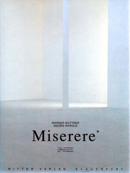 Büttner, Werner [und] Georg Herold: Misere* [lat. = erbarme dich!] 1) Bußpsalm in der Vulgata, 2) Koterbrechen. Erste Auflage. Klagenfurt. Ritter Verlag. 1993. 4°. 108 S.; [1] unpaginiertes Blatt. OKarton mit OUmschlag. Fußschnitt etwas nachgedunkelt, Einband minimalst angestaubt. Winziges Fleckchen auf der letzten Seite. Sonst gutes Exemplar. Durchgehend mit sepiafarbenen Abbildungen auf glebbraunem Papier versehen. Gemeinsames Künstlerbuch mit sieben Texten von Werner Büttner.