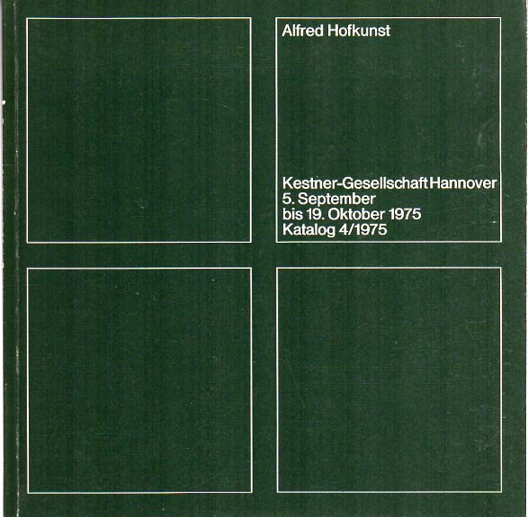Hofkunst, Alfred: Kestner-Gesellschaft Hannover, 5. September bis 19. Oktober 1975. Katalog 4/1975. Hannover. Kestner-Gesellschaft. 1975. 21 x 21 cm. 83 S., 7 Blatt. OKarton. Gutes bis sehr gutes Exemplar. Enthält unter anderem mit einen Text von Peter Bichsel und ein Interview. Durchgehend mit Abbildungen versehen, teilweise in Farbe.