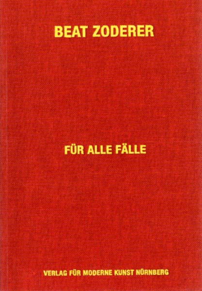 Zoderer, Beat: Für alle Fälle Kunstverein Freiburg 26. März bis 30. Mai 1999 / Museés des Beaux Arts, La Chaux de Fonds, Juni bis August 2000 [und weitere Stationen]. 1. Auflage. Nürnberg. Verlag für Moderne Kunst. 1999. 23 x 16 cm. 208 S. OKarton mit OKLappenumschlag. Kleiner Namensstempel auf der ersten Seite, sonst gutes Exemplar. Mit Texten von Thomas Wulffen, Elisabeth Grossmann, Michael Stoeber, Carrie Asman, Renate Puvogel, Stephan Berg. Mit zahlreichen Abbildungen.