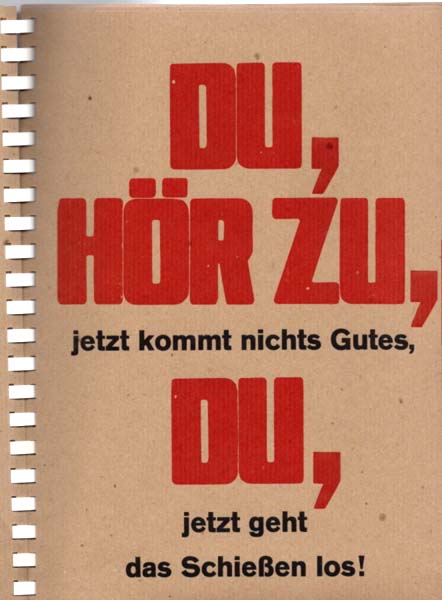 Block, Alexander: Die Zwölf. Deutsch von Paul Celan. Gestaltung Dieter Wagner. Anhang Christian Pieta. Auflage 51 Exemplare. Berlin. Selbstverlag Dieter Wagner / Druckerei Gerike. 1980. 31 x 23 cm. 147 unpaginierte Blatt; 16 unpaginiete S. Anhang. OKunststoff-Spiralbindung. Gutes bis sehr gutes Exemplar. Das von Alexander Block zwischen dem 8. und 28. Januar 1918 geschriebene Poem ist hier in der kongenialen Übersetzung von Paul Celan in Siebdruck in den Farben Schwarz, Rot und Weiß auf braunem Packpapier gedruckt und experimentell gestaltet. In Spiralbindung gebunden. Vom Gestalter Dieter Wagner quer über den Umschlag mit einer handschriftlichen Zueignung versehen und signiert. Erschien in nur 51 Exemparen.