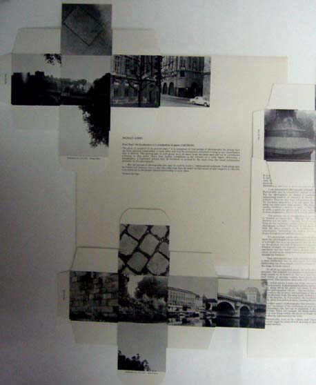 Kirby, Michael: Pont Neuf: the localization of a tetrahedron in space (14June69). New York. [Multiples]. 1970. 31,5x 31,5 cm. 4 Kartons mit Stanzungen, 1 Blatt. OPapier-Kuvert. Umschlag etwas angestaubt, Lasche mit kleinen Einrissen und Läsuren, sonst gutes Exemplar. Erste Ausgabe, erschienen in 1200 Exemplaren als Teil der Multiple-Box „Artists and Photographs“. Enthält 4 gestanzte Kartons mit Fotomotiven der Pont Neuf in Paris, die sich zu Würfeln gestalten lassen. Mit einem beiliegenden Statement Kirbys (1 Blatt).
