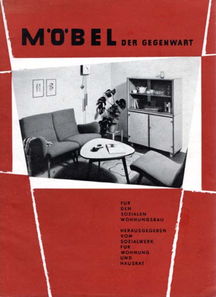 Möbel der Gegenwart für den sozialen Wohnungsbau. Contemporary Furniture for Sozialer Wohnungsbau / Ameublement de l`epoque actuelle. Herausgegeben vom Sozialwerk für Wohnung und Hausrat, Baden-Baden. Erste Auflage. Bonn. Domus Verlag. 1953. 27 x 20 cm. 23 S., 52 unpaginierte S. OKarton mit OKlappenumschlag. Umschlag minimalst angestaubt und wenig berieben. Sonst gutes Exemplar. Durchgehend mit schwarz-weißen Abbildungen versehen. Texte in Deutsch, Englisch und Französisch. Mit einem Textbeitrag von Hermann Doerr.