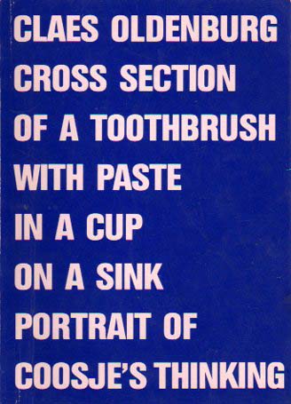 Oldenburg, Claes: Ausschnitt von einer Zahnbürste mit Paste in einem Becher auf einem Waschtisch: Abbild von Coosje`s Denken / Cross Section Of A Toothbrush With Paste In A Cup On A Sink Portrait Of Coosje`s Thinking. Erste Auflage. Krefeld. Krefelder Kunstmuseen. 1985. 17 x 12 cm. 63 S. OKarton mit Klappen. Einband etwas berieben, sonst gutes Exemplar. Text in Deutsch und Englisch. Mit Textbeiträgen von Gerhard Storck und Claes Oldenburg. Mit zum Teil farbigen Abbildungen versehen.