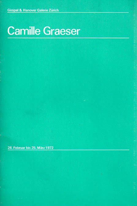 Graeser, Camille: Ausstellung zum achtzigsten Geburtstag. 26. Februar bis 25. März 1972. Erste Auflage. Zürich. Gimpel & Hanover Galerie. 1972. 24 x 15 cm. 16 unpaginierte S. OKarton. Gutes Exemplar. Enthält 10 Werkabbildungen, davon 2 in Farbe.