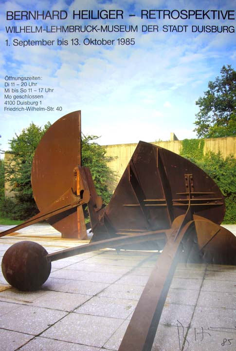 Heiliger, Bernhard: Retrospektive. Wilhelm-Lehmbruck-Museum der Stadt Duisburg. 1. September – 13. Oktober 1985. [Plakat]. Duisburg. Wilhelm-Lehmbruck-Museum. 1985. 83,5 x 59,5 cm. Sehr gutes Exemplar. Plakat, farbiger Offsetdruck, unten rechts von Bernhard Heiliger handschriftlich monogrammiert und datiert.