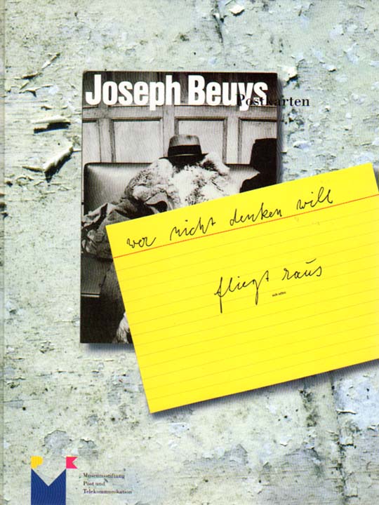 Beuys, Joseph: wer nicht denken will fliegt raus. Joseph Beuys Postkarten Sammlung Neuhaus. Herausgegeben von Helmut Gold, Margret Baumann und Doris Hensch. Mit Beiträgen von Klaus Staeck, Jörg Neuhaus, Matthias Bunge, Margret Baumann und Doris Hensch. Eine Publikation der Museumstiftung Post und Telekommunikation. Erste Auflage. Heidelberg. Museumstiftung Post und Telekommunikation / Edition Braus. 1998. 28 x 22 cm. 227 S. OPappband. Rücken etwas aufgehellt, sonst sehr gutes Exemplar. Kataloge der Museumstiftung Post und Telekommunikation ; Band 3. Durchgehend mit Abbildungen versehen, teilweise in Farbe. Erschien anläßlich der Ausstellung „wer nicht denken will fliegt raus – Joseph Beuys Postkarten“ im Museum für Post und Kommunikation, Frankfurt am Main (23.1.1998 bis 26.4.1998) und im Museum für Post und Kommunikation, Berlin (5.5.1998 – 20.9.1998).