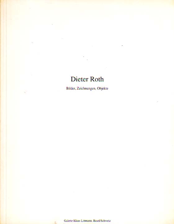 Roth, Dieter: Bilder, Zeichnungen, Objekte. Ausstellung April – Mai 1989. Erste Auflage. Basel. Galerie Littman. 1989. 27 x 21 cm. [180] unpaginierte S. OKarton. Obere Stoßkante etwas gestaucht, untere Einbandkante mit kleiner Läsur. Einband am Rücken etwas gebräunt. Ordentliches Exemplar. Durchgehend mit s/w Abbildungen versehen.