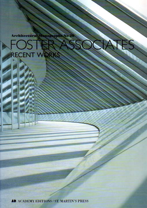 Architectural Monographs No 20. Foster Associates. Recent Work. London / New York. The Academy Group Ltd / St Martin`s Press. 1992. 31 x 25 cm. 143 S. OKarton mit OKlappenumschlag. innendeckel mit Besitzstempeln, wenige Seiten mit ausgeglätteten Eselsohren, Einband minimal berieben. Ordentliches Exemplar. Text in Englisch / Text English. Mit einer Einleitung von Kenneth Powell sowie einem Beitrag von Norman Foster. Durchgehend mit meist farbigen Abbildungen versehen.