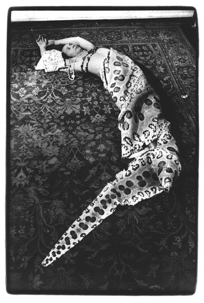Polke, Sigmar – Bernd Jansen: Schlangenhaut – Willich 1973. Bernd Jansen fotografiert Sigmar Polke. Schwarz-Weiß Fotografie, 30 x 40 auf Baryth, verso bezeichnet, signiert und datiert. Vintage Print aus 1973 in der Rahmung des Fotografen für die erste Galeriepräsentation 1973. Rahmung verso mit Fensteraussparung für Bezeichnung, Signatur und Datierung. Innenmaß der Fotografien 35 x 24 cm. Hier das letzte Bild der Serie mit Polke in „endgültiger Pose“.
