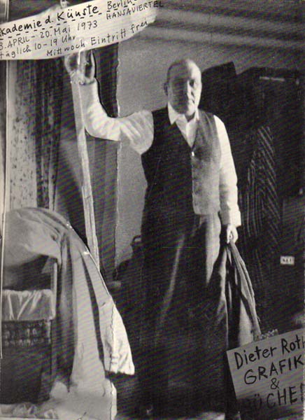 Rot, Dieter (auch Dieter Roth): Bücher und Grafik. Aus den Jahren 1947 bis 1971. (1. Teil) Books and grafik (part 1). From 1947 until 1971. Gesammelte Werke Band 20. Erste Ausgabe. Sttgt. London. Reykjavik. Edition Hansjörg Mayer. 1972. 23 x 17 cm. 222 S. 8 Blatt. Illustrierter OKarton mit illustriertem OUmschlag. Umschlag am Kapital etwas berieben, Rücken etwas nachgedunkelt. Name und Datum auf Vorsatz. Sonst gutes Exemplar. Verzeichnis der Buchobjekte und Grafiken bis 1971. Der 20. Band der Gesamtausgabe gilt gleichzeitig auch als Ausstellungskatalog. Hier eines der Exemplare mit dem Umschlag für die Akademie der Künste Berlin, 13. April bis 20. Mai 1973. Die Umschläge unterscheiden sich jeweils gestalterisch. Texte in Deutsch und Englisch.