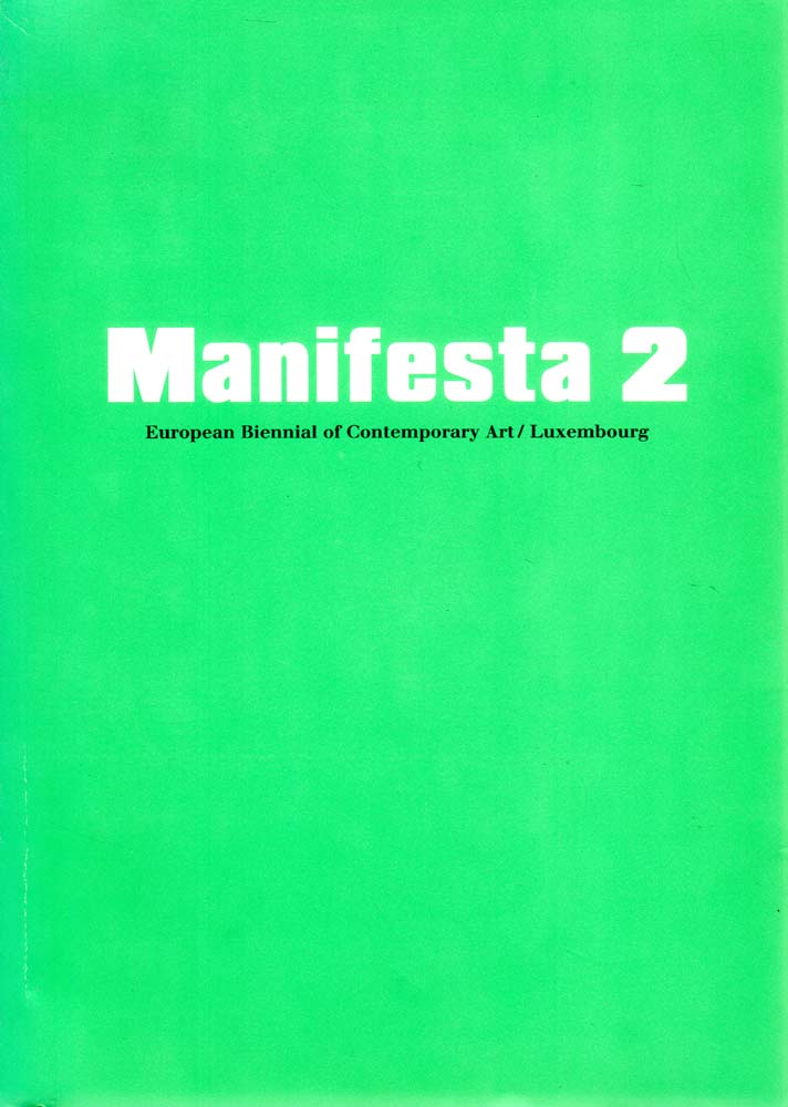 Manifesta 2. European biennial for contemporary art / Luxembourg, 28 June-11 October 1998. 1. Auflage (Englisch). Luxembourg. Agence luxembourgeoise d´action culturelle. 1998. 26 x 19 cm. 271 S. 2 Blatt. OKarton. Einbandkanten mit wenigen Bereibungen, Rücken gering aufgehellt, 3 dezente Fleckchen am hinteren Einband, sonst gutes Exemplar. Englischsprachige Ausgabe. Durchgehend mit meist farbigen Abbildungen versehen. Die Künstler: Maurizio Cattelan, Elke Krystufek, Michel Majerus, Tobias Rehberger, Andreas Slominski, [und viele weitere]. Beiliegend: „Manifesta 2 – Newletter #3“.