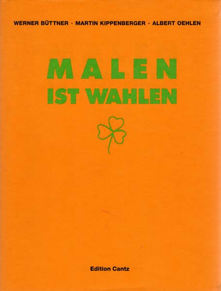 Kippenberger, Martin / Werner Büttner / Albert Oehlen: Malen ist Wahlen. Kunstverein München, 15. Juli bis 13. September 1992. Auflage: 750 und 1250 Exemplare. München. Ostfildern-Ruit. Kunstverein München / Edition Cantz. 1992. 28 x 21 cm. [110] S. OPappband mit OUmschlag. Ein sehr kleiner, sauber hinterlegter Einriss am oberen Umschlagrand, sonst sehr gutes und frisches Exemplar. Katalogbuch zur gemeinsamen Ausstellung Büttners, Oehlens und Kippenbergers im Kunstverein München, angelehnt an die Ausstellung „Wahrheit ist Arbeit“, die 1984 im Essener Folkwangmuseum stattgefunden hat. Hier ein Exemplar der gebundenen Ausgabe mit orangenem Umschlag und grünem Tite in einer Auflage von 750 Exemplaren. [Vgl. Uwe Koch. Kommentiertes Werkverzeichnis der Bücher von Martin Kippenberger, Nr. 112].