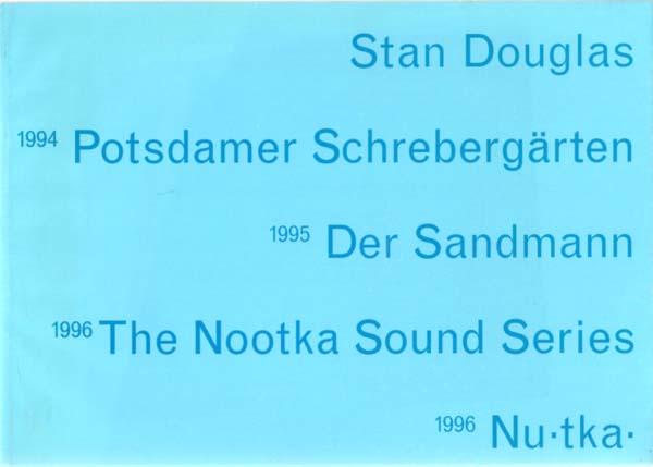 Douglas, Stan – Julian Heynen (Herausgeber): Stan Douglas. 1994 Potsdamer Schrebergärten. 1995 Der Sandmann. 1996 The Nootka Sound Series. 1996 Nu-tka. 1. Ausgabe. Köln. Oktagon Verlag. / Fördererkreis Krefelder Kunstmuseum. 1996. 21 x 30 cm. 56 Sl. OKarton mit illustriertem OKlappenumschlag. Minimalste Randläsuren, Umschlag geringfügig aufgehellt, sonst gutes Exemplar. Kataloge für junge Künstler. Alfried-Krupp-von-Bohlen-und Halbach-Stiftung; Band 84. Durchgehend mit meist farbigen Abbildungen versehen. Katalog zur gleichnamigen Ausstellung im Museum Haus Lange, Museum Haus Esters, Krefeld, vom 17.11.96 bis zum 19.1.97.