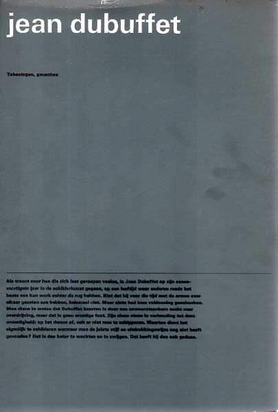 Dubuffet, Jean: tekeningen, gouaches. Stedelijk Museum Amsterdam, 26/11/64 – 11/1/65. 1. Auflage. Amsterdam. Stedelijk Museum Amsterdam. 1965. 27 x 18,5 cm. 38 unpaginierte S. Illustrierter OKarton. Einband und Stoßkanten leicht berieben und nachgedunkelt, sonst sehr gutes Exemplar. Erschienen anlässlich der Ausstellung des Stedelijk Museum Amsterdam, vom 26. November 1964 – 11. Januar 1965. Katalognr. 369. Durchgehend mit schwarz-weiß Abbildungen versehen. Texte in Niederländisch.