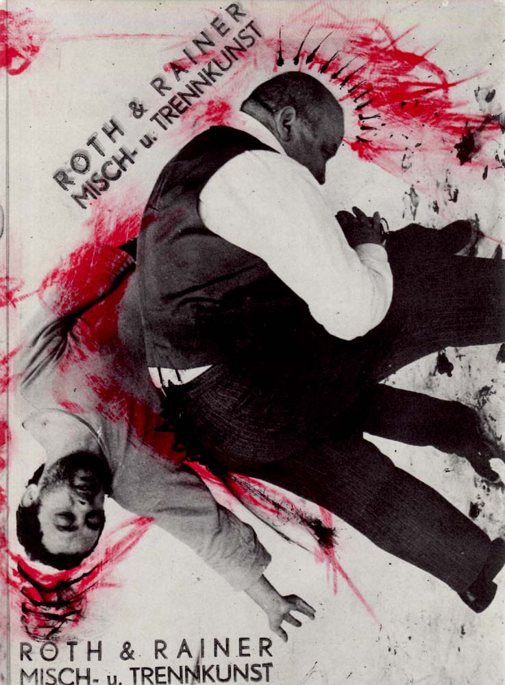 Roth, Dieter – Arnulf Rainer: Roth & Rainer, Misch- u. Trennkunst. Erste Auflage. [Wien]. [Selbstverlag]. Um 1976. 22 x 16 cm. 12 unpaginierte S. + 16 Blatt Fotofafeln. Illustrierter OKarton. Gutes bis sehr gutes Exemplar. Mit schwarz-weiß Abbildungen versehen. Die Texte sind identisch mit den für den Katalog der Galerie AK, Sworowski Frankfurt im gleichen Jahr erschienenen Katalog verwendeten. Anhand der hier gesetzten Seitenzahlen sind diese offenbar mehrfach eingesetzt worden.