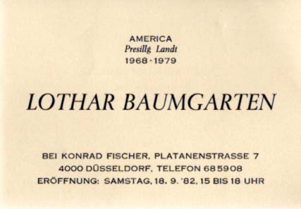 Baumgarten, America. Presillg Landt. 1968 – 1979. Lothar Baumgarten. Bei Konrad…