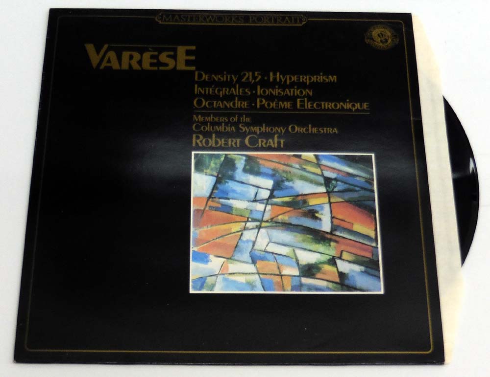 Varese, Edgar: VARESE. DENSITY 21,5 • HYPERPRISM • INTEGRALES • IONISATION • OCTANDRE • POEME ELECTRIQUE. MEMBERS OF THE COLUMBIA SYMPHONY ORCHESTRA, ROBERT CRAFT. [Schallplatte / Vinyl Record]. Reissue. CBS Inc. 1983. 31,5 x 31,5 cm. OSchallplatte. OKarton-Cover. Cover an den Kanten teilweise leicht bestoßen bzw. gering knickspurig (Very Good+), Schallplatte in sehr gutem Zustand (Near Mint). Insgesamt gutes Exemplar. CBS Masterworks – CBS 60286.