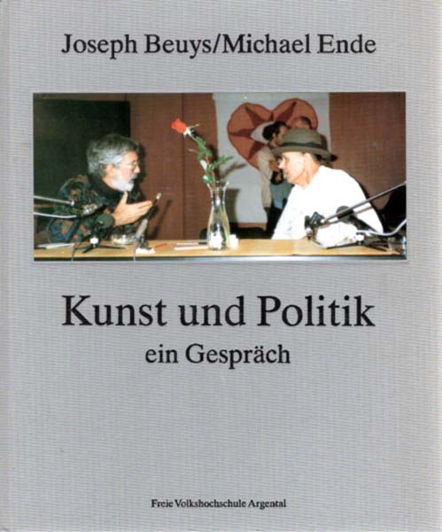 Beuys, Joseph / Ende, Michael: Kunst und Politik – ein Gespräch. Erste Auflage. Wangen. Freie Volkshochschule Argental. 1989. 24 x 20 cm. 118 S., 3 Blatt. OLeinen mit montierter Farbabbildung recto. Einband wenig berieben und etwas angestaubt. Sonst gutes Exemplar. Dokumentiertes Gespräch zwischen Beuys und dem Schriftsteller Michael Ende, mit einigen Fotografien und Werkabbildungen.