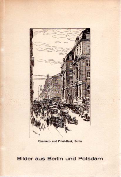 Vennemann, Albert / Osborn, Max – Werner Rades (Herausgeber): Berlin und / and Potsdam Sanssouci. Erste Auflage dieser Ausgabe. o. O. [Stettin]. Verlag F. Hessenland GmbH. o. J. [1926]. 23,5 x 16 cm. [72] unpaginierte Blätter. Illustrierter OKarton. Einband etwas angestaubt, nachgedunkelt und leicht berieben. Sonst noch guter Zustand. Durchgehend mit schwarz-weißen Abbildungen nach Aufnahmen von Albert Vennemann versehen. Touristischer Stadtführer zu Berlin und Potsdam. Texte in deutscher und englischer Sprache. Eine Ausgabe für die Commerz- und Privat-Bank Aktiengesellschaft Hamburg und Berlin.