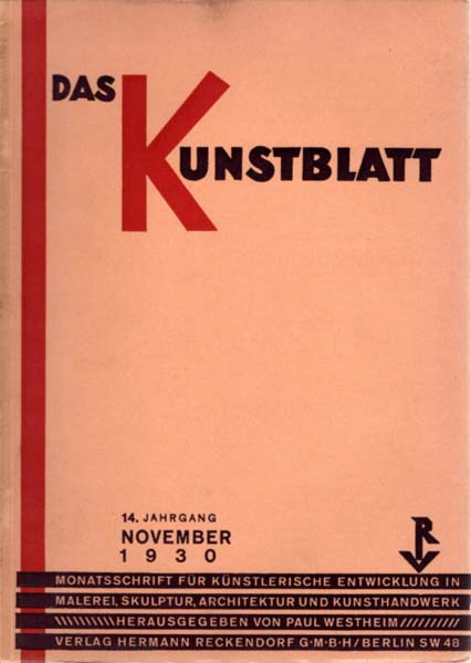 Westheim, Das Kunstblatt. 14. Jahrgang. November 1930.