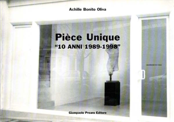 Oliva, Achille Bonito: Pièce Unique. „10 ANNI 1989 – 1998“. Schede critiche, fiches critiques, critical articles: Cecilia Casorati. Erste Auflage. Mailand. Giampaolo Prearo Editore. 1998. 21 x 29,8 cm. [48] unpaginierte Blätter. Illustrierter OKlappkarton. Einband wenig berieben, innen papierbedingt minimal lichtrandig, sonst gutes Exemplar. Durchgehend mit meist farbigen Abbildungen versehen. Texte in italienischer, französischer und englischer Sprache. Monographie zur Ausstellungstätigkeit der Pariser Galerie „Pièce Unique“ im Zeitraum von 1989 bis 1998, die, wie der Name verrät, jeweils ein Werk eines arrivierten Künstlers oder Künstlerin ausstellte. Mit Werken von Buren, Merz, Kounellis, Alighiero & Boetti, Twombly, Taaffe, Baselitz, Paladino, Trockel, Paolini, Barcelò, Boltanski, Immendorff, Warhol. Cucchi, Bourgeouis u. a.