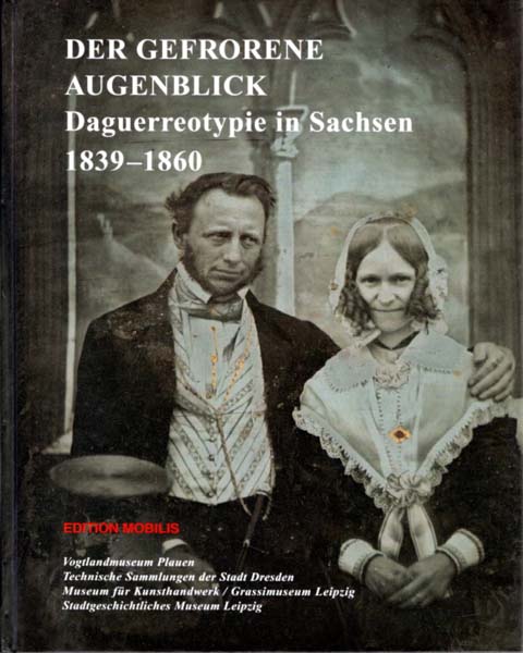 Voigt, Jochen (Herausgeber): Der gefrorene Augenblick. Daguerreotypie in Sachsen 1839 – 1860. Inkunabeln der Photographie in sächsischen Sammlungen. Unter Mitwirkung von Christoph Kaufmann, Eberhard Patzig, Roland Schwarz und Frank Weiß. Gemeinsamer Bestandskatalog „Daguerreotypie“ Vogtlandmuseum Plauen, Technische Sammlungen der Stadt Dresden, Museum für Kunsthandwerk/Grassimuseum Leipzig, Stadtgeschichtliches Museum Leipzig. Erste Auflage. Chemnitz. Edition Mobilis. 2004. 30,6 x 24,3 cm. 320 S. Illustrierter OPappband. Einband am Fuß minimalst bestoßen, sonst gutes bis noch sehr gutes Exemplar. Durchgehend mit schwarz-weißen, sepiafarbenen und farbigen Abbildungen versehen. Umfangreicher Bestandskatalog verschiedener sächsischer Museumssammlungen von Daguerreotypien. Texte in deutscher Sprache.