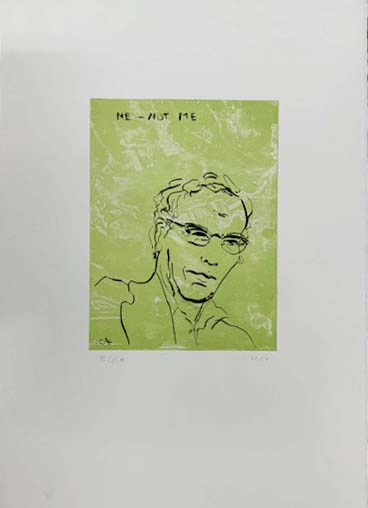 Schütte, Thomas: ME – NOT ME. [Kaltnadelradierung auf hellem Büttenkarton]. o. O. [Düsseldorf]. o. V. [fifty-fifty Straßenmagazin / Galerie]. 2004. 1 Blatt. Sehr gutes Exemplar. Edition Thomas Schüttes für die Galerie des Düsseldorfer Straßenmagazins „fifty-fifty“ (grüne Variante), erschienen in einer nummerierten und signierten Auflage von 50 Exemplaren, hier Exemplar Nr. 22. 23,7 x 17,9 cm; [Bildmass]; 49,3 x 35,1 cm [Blattmass]. Vom Künstler unterhalb des Bildmotivs in Bleistift handsigniert und nummeriert.