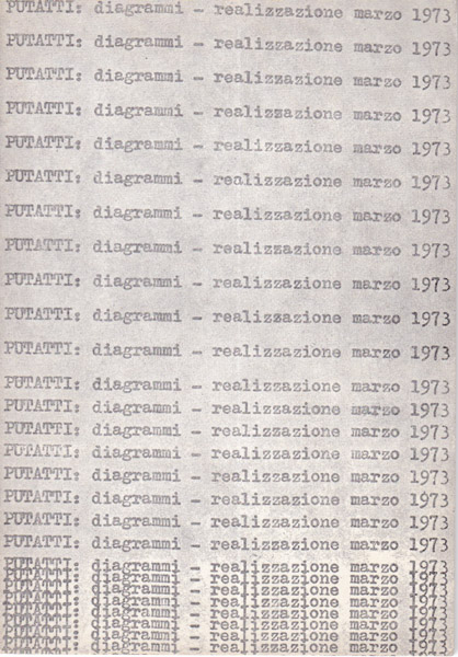 Putatti, Sergio: Diagrammi. Realizzazione Marzo 1973. Auflage 1000 Exemplare. Turin. Galerie Beniamino. 1973. 16,5 x 11,5 cm. 1 Blatt Text/ 15 Blatt Abbildungen. Illustrierter OKarton. Einbandkanten etwas lichtandig und mit kleinen Bereibungen, Rückseite handschriftlich mit Adresse des Künstlers in Bleistift versehen. Sonst gutes bis sehr gutes Exemplar. Durchgehend mit Abbildungen versehen. Text in italienischer Sprache.