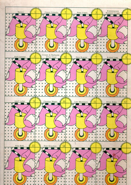 Environments. Studium Generale Rijksuniversiteit Utrecht, Beeldende kunst – Environments. 16 november 1968 tot 5 januari 1969. 1. Auflage. Utrecht. Studium Generale Rijksuniversiteit Utrecht. 1968. 32 x 23 cm. 36 S., 2 Blatt, Multiple. OPapp-Kassette. Ohne Batterie, sonst sehr gutes, frisches Exemplar. Ausstellungskatalog mit Multiple-Spiel. Enthält 2 lose Bögen mit Ausstanzungen, einen Katalog mit einer im vorderen Innendeckel integrierten Drehscheibe sowie elektronisches Zubehör (Batterie, Lampe, Positiv-Negativ Leitung, Alubeschichtetes Spielfeld etc.(Lampe leuchtet nicht mehr). Vorgestellt werden Arbeiten von Boezem, Gianni Colombo, Peter Engels, Karl Gerstner, Konrad Lueg, Adolf Luther, Christian Megert, Lutz Mommartz, Klaus Rinke etc.