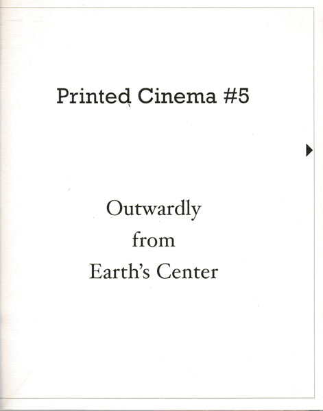 Barba, Rosa: Outwardly from Earth’s Center. Erste Auflage. Brüssel. Amsterdam. Argos. Artimo. 2005. 27,5 x 23 cm. 20 unpaginierte S. OBroschur. Einbandkanten minimal nachgedunkelt und mit kleinen Bereibungen. Sonst gutes bis sehr gutes Exemplar. Printed Cinema 5. Durchgehend mit doppelseitigen farbigen Abbildungen ohne Text versehen.