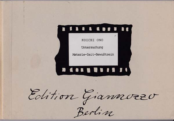 Ono, Koichi: Untersuchung. Materie – Zeit – Bewußtsein. Auflage 100 Exemplare. Berlin. Edition Giannozzo. 1981. 14,5 x 21 cm. 136 unpaginierte S. OKarton mit Fensterausschnitt auf dem Vorderdeckel. Einbandkanten etwas nachgedunkelt und mit kleinen Bereibungen, leicht angestaubt. Sonst gutes Exemplar. Edition Giannozzo 16. Durchgehend mit ganzseitigen schwarz-weiss-Abbildungen zur Rauminstallation in der Galerie Giannnozzo sowie zerkleinertem Brikettmaterial aus der Ausstellung, montiert im hinteren Innendeckel, versehen.