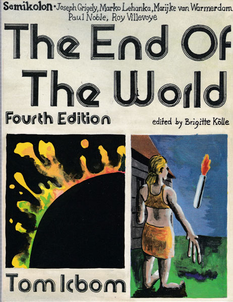 Kölle, Brigitte [Herausgeber]: Semikolon. The End Of The World. Joseph Grigely, Marko Lehanka, Marijke van Warmerdam, Paul Noble, Roy Villevoye. Erste Auflage. Frankfurt am Main. Portikus. 1996. 26 x 20 cm. 87 S. Ilustrierter OPappband mit Cellophanumschlag. Gutes bis sehr gutes Exemplar. Katalog zur Ausstellung Frankfurt am Main 28. September bis 24. November 1996 durchgehend mit ganzseitigen Werkabbildungen der genannten Künstler versehen. Text in deutscher und englischer Sprache.