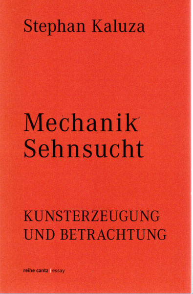 Kaluza, Stephan: Mechanik Sehnsucht. Kunsterzeugung und Betrachtung. Erste Auflage. Esslingen. Edition Cantz. 2019. 18 x 12 cm. 179 S. OKarton. Sehr gutes Exemplar. reihe cantz/ essay.