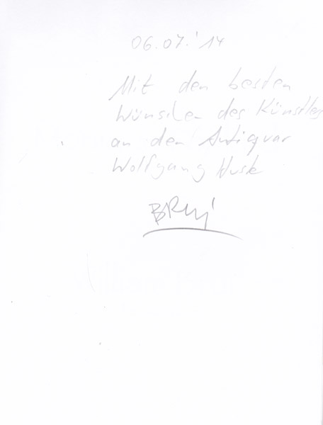 Brui, William – Monique Poulard: Monique Poulard Haikus – William Brui Peintures. Erste Auflage. Le Touquet. editions Auréoline. 2006. 22,5 x 17 cm. 110 unpaginierte S. Illustrierter OKarton. Einbandkanten mit kleinen Bereibungen. Sonst gutes bis sehr gutes Exemplar. Durchgehend mit ganzseitigen, farbigen Abbildungen der Gemälde von Wiliam Brui versehen. Mit mehrzeiliger Widmung des Künstlers auf dem Vorsatzblatt. Text in Französisch.
