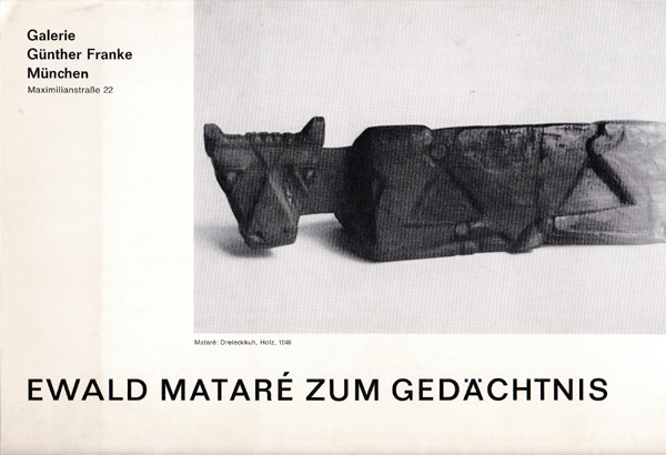 Mataré, Ewald: Ewald Mataré zum Gedächtnis. Bronzen, Arbeiten in Holz, Ausgewählte Holzschnitte, Aquarelle. München. Galerie Günther Franke. 1966. 24 x 16 cm. Leporello in vier Segmenten, beidseitig bedruckt. Kanten etwas nachgedunkelt und mit kleinen Bereibungen. Sonst gutes bis sehr gutes Exemplar. Erschienen anlässlich der Ausstellung München 30. September bis 12. November 1966 mit 6 schwarz-weissen Abbildungen sowie Ausstellungsverzeichnis versehen.