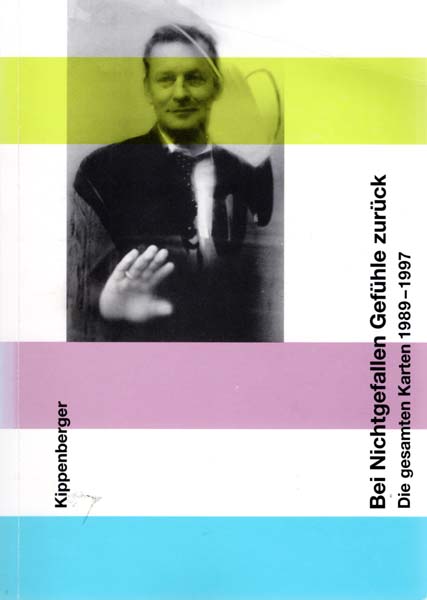 Kippenberger, Martin: Bei Nichtgefallen Gefühle zurück. Die gesamten Karten 1989 – 1997. Mit einem Text von Reiner Speck. Erste Auflage. Köln. Verlag der Buchhandlung Walther König. 2000. 21 x 15 cm. [224] unpaginierte S. OKarton. Einband angestaubt, vcerso kleines Preisetikett. Sonst gutes Exemplar. Postum erschienenes Verzeichnis der Einladungskarten von 1989 bis zum Tod Kippenbergers 1997. Mit 106 Einladungs- und Postkarten, jeweils mit ganzseitiger Abbildung und ausführlicher Kommentierung.