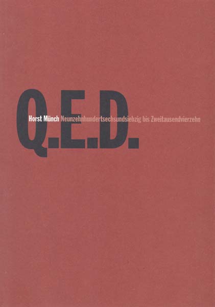 Münch, Horst: Q.E.D. Neunzehnhundertsechsundsiebzig bis Zweitausendvierzehn. Erste Auflage. Selbstverlag. 2014. 30 x 21 cm. 331 S., 1 Blatt. OKarton. Einbandkanten mit minimalen Bereibungen. Sonst sehr gutes Exemplar. Umfangreicher Werkquerschnitt durchgehend mit Abbildungen versehen. Mit handschriftlicher Widmung des Künstlers auf dem Titelblatt!