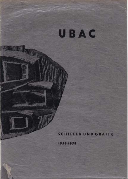 Ubac, Raoul: Schiefer und Grafik 1951 – 1959. Erste Auflage. Wuppertal. Galerie Parnass. 1959. 29,5 x 21 cm. 22 unpaginierte S. OBroschur mit illustriertem Pergaminumschlag. Umschlag mit kleinen Randläsuren und Einrissen. Gutes Exemplar. Schön gestalteteter Katalog zur Ausstellung Wuppertal 7. Oktober bis 7. November 1959 durchgehend mit Werkabbildungen – zum Teil auf Pergaminpapier gedruckt – versehen. Inliegend Einladung zur Vernissage Raoul Ubac, Gouaches und Schieferreliefs, Wuppertal 1951.