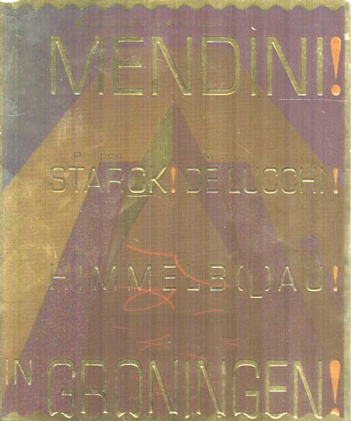 Martin, Marijke – Cor Wagenaar/ Annette Welkamp: Alessandro & Francesco Mendini! Philippe Starck! Michele De Lucchi! Coop Himmelblau! In Groningen! Erste Auflage. Groningen. Groninger Museum. 1996. 29,5 x 24,5 cm. 199 S. Illustrierter OKarton mit OUmschlag. Umschlagkanten mit kleinen Bereibungen, privates Exlibris auf Titelblatt. Sonst gutes bis sehr gutes Exemplar. Schön gestalteter Katalog zur Ausstellung Groningen 1996 durchgehend mit Abbildungen versehen. Text in engischer und niederländischer Sprache.