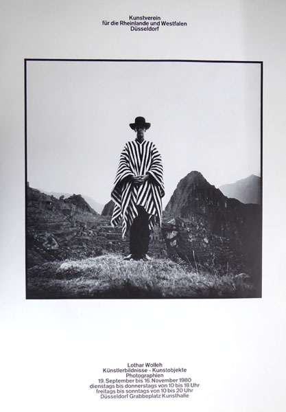Wolleh, Lothar: Künstlerbildnisse – Kunstobjekte – Photographien. [Plakat]. 19. September bis 16. November 1980, Kunstverein für die Rheinlande und Westfalen. Düsseldorf. Kunstverein für die Rheinlande und Westfalen. 1980. 84 x 60 cm. Sehr gutes Exemplar. Wolleh fotografierte in den 60er und 70er Jahren die Kunstszene, besonders intensiv in Düsseldorf.