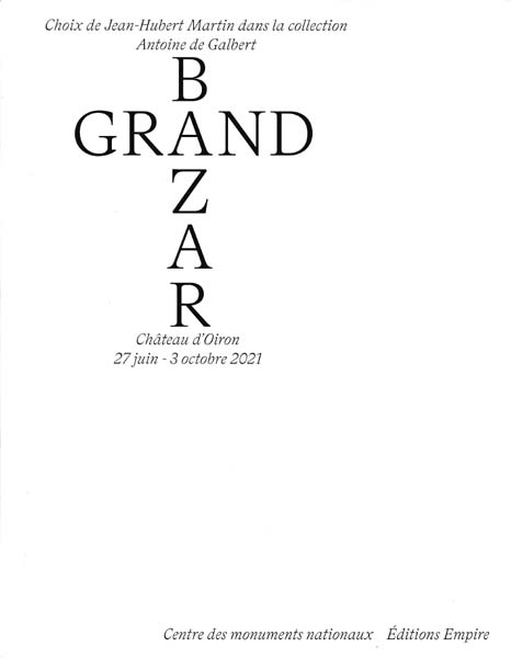 Martin, Jean-Hubert: Grand Bazar. Choix de Jean-Hubert Martin dans la collection Antoine de Galbert. Erste Auflage. Paris. Syndicat Empire SAS. 2021. 28 x 22 cm. 156 S. OPappband. Einbandkanten minimal berieben, obere Ecke des Rückendeckels mit kleiner Stauchung. Sonst gutes bis sehr gutes Exemplar. Katalog zur Ausstellung 27. Juni bis 3. Oktober 2021, die Werke der Sammlung von Antoine de Galbert mit denen der Sammlung Jean-Hubert Martin gegenüberstellt. Durchgehend mit Abbildungen versehen, darunter Werke von Ben, Daniel Spoerri, Erwin Wurm, Arnulf Rainer, Unica Zürn, Annette Messager, Mark Dion und vielen anderen. Text in französischer Sprache.