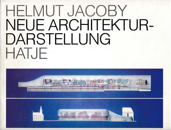 Jacoby, Helmut: Neue Architekturdarstellung. Erste Auflage. Stuttgart. Verlag Gerd Hatje. 1981. 22,5 x 28,5 cm. 167 S, OLeinen mit illustriertem OUmschlag. Umschlagkanten etwas nachgedunkelt und berieben, insgesamt leicht angestaubt, kurzer privater Eintrag – Ort + Datum – auf dem Titelblatt. Sonst gutes Exemplar. Durchgehend mit ganzseitigen, schwarz-weissen Abbildungen versehen.