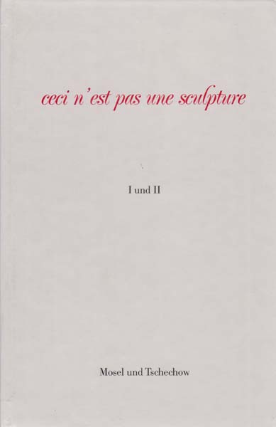Schütz, Heinz [Herausgeber]: Ceci n’est pas une sculpture. Erste Auflage. München. Galerie Mosel und Tschechow. 1990. 21 x 14 cm. 103 S. OPappband, Einband minimal gebräunt. Sonst gutes bis sehr gutes Exemplar. Katalog zur Ausstellung München 1990/ 1992 (Teil I und II). Durchgehend mit Abbildungen versehen.